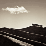 A monochrome image of a solitary cloud drifting over the hills of South Island New Zealand. This minimalist photograph captures strong contrasts of li...[+]