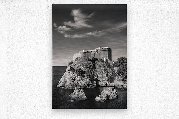 A monochrome photograph of Fort Lovrijenac also known as the Red Keep from Game of Thrones situated in Dubrovnik Old Town Croatia. This detailed image...[+]