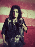 A stylized photograph of Alice Cooper performing on stage at Glasgows SSE Hydro in November 2017 with the bold red and white stripes of the American f...[+]
