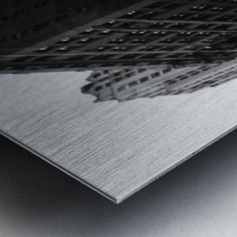 A monochrome photograph of a dressed mannequin displayed in the window of Macys on N Wabash Avenue Chicago. Captured from a low angle the image features the mannequin illuminated inside the store window with reflections of the towering skyscrapers surrounding the area. The juxtaposition of urban architecture and the shop display creates a unique contrast between fashion and city life. A perfect photograph for fans of street photography and urban cityscapes. ..... Please Note: This image is intentionally presented with a grainy texture as part of its aesthetic.