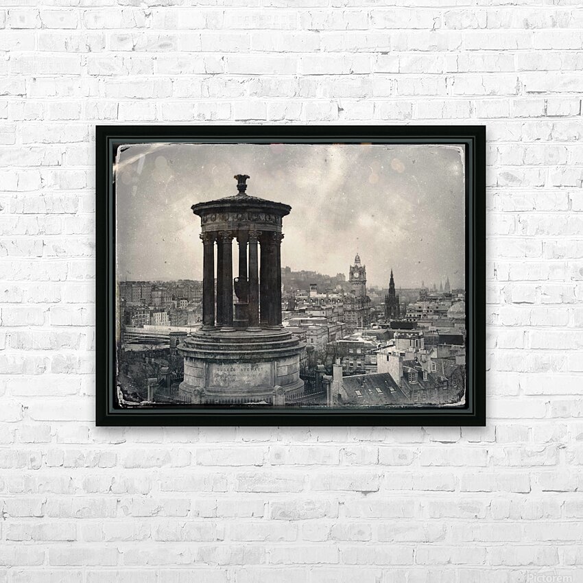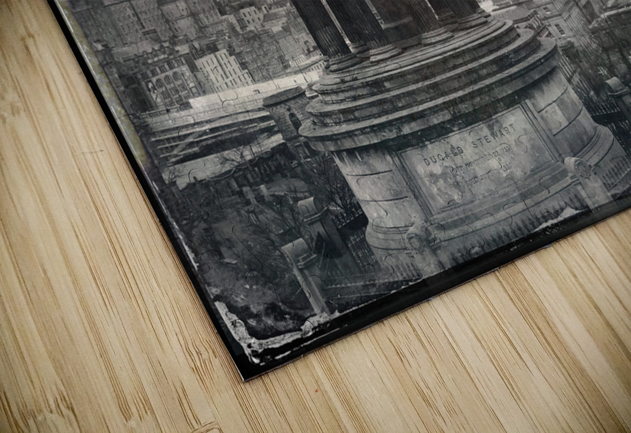A monochrome view of Edinburgh city centre from Calton Hill features the iconic Dugald Stewart Monument prominently in the foreground. This tin-type s...[+]