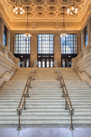 A view looking up the iconic steps of Union Station toward the Canal Street entrance in Chicago capturing the grandeur of this historic train station....[+]