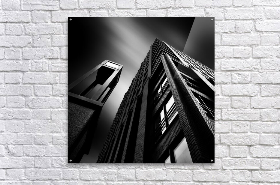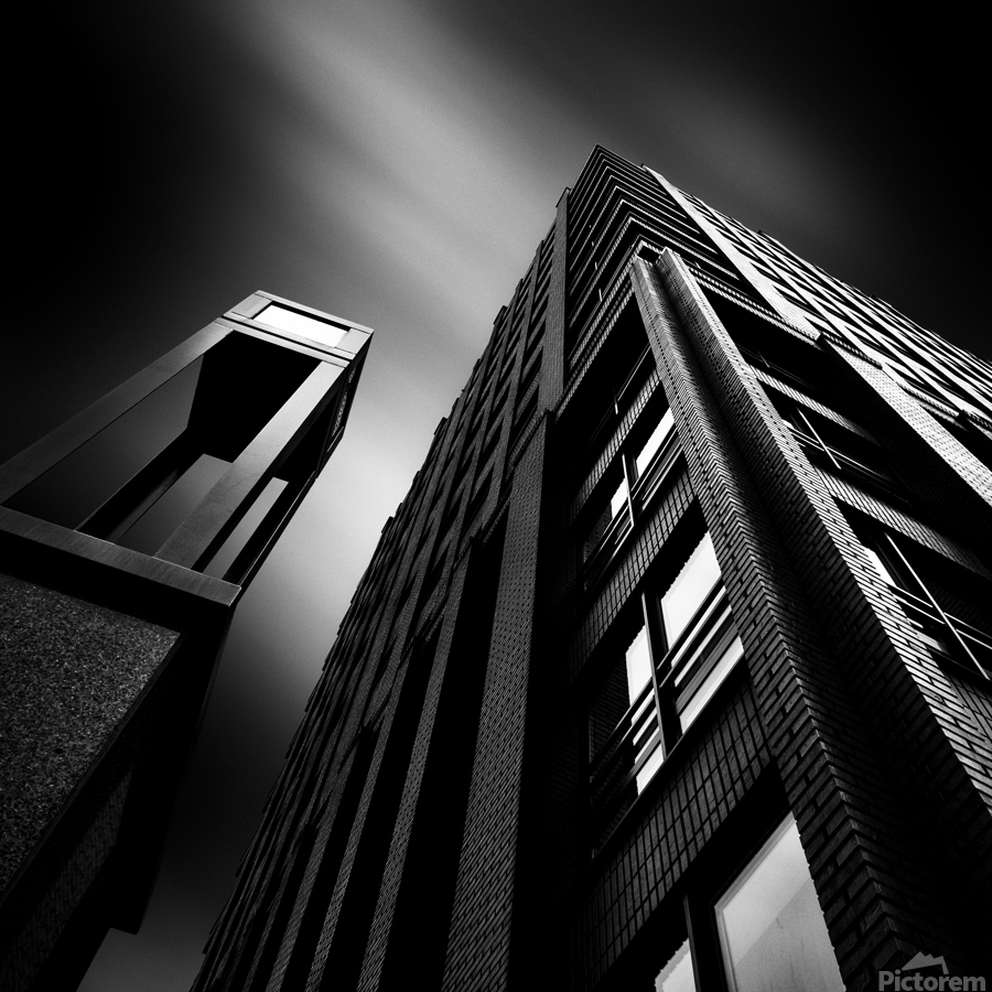 A monochrome long exposure photograph of the Wijnhaeve building in Rotterdam, Netherlands. Captured from a low angle with clouds sweeping overhead, this composition emphasises the building’s sharp, angular forms and bold modernist design. The contrast between light, shadow, and movement creates a dramatic, minimalist study of urban architecture. Located in the heart of Rotterdam, the Wijnhaeve building reflects the city’s reputation for innovative architecture and contemporary design. Its geometric lines and imposing facade make it a standout example of the modern urban landscape, captured here with an emphasis on mood, form, and atmosphere. This photograph is ideal for architecture enthusiasts, fans of urban photography, or anyone looking to bring a bold architectural statement into their space. Available as wall art and a wide range of other product formats.