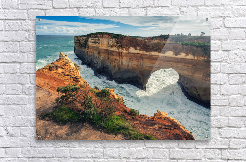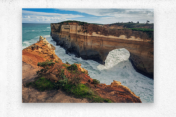 The Island Archway once a striking natural formation at Loch Ard Gorge along Australia’s Great Ocean Road. Captured before its collapse in 2009 the image preserves the memory of this iconic landmark set against the dramatic coastal scenery of Southern Australia. A great photograph for history enthusiasts geologists or anyone inspired by the fleeting beauty of nature’s creations.