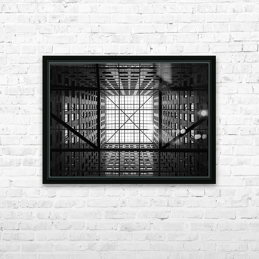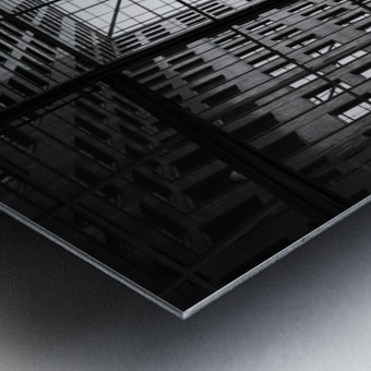 A monochrome photograph capturing the intricate geometric patterns of the glass roof from the interior of Chicagos historic Insurance Exchange Building. The abstract composition highlights the interplay of light and shadow emphasizing the architectural elegance of the early 20th-century design. A perfect photograph for architects historians and art enthusiasts seeking a unique perspective on Chicagos architectural heritage.