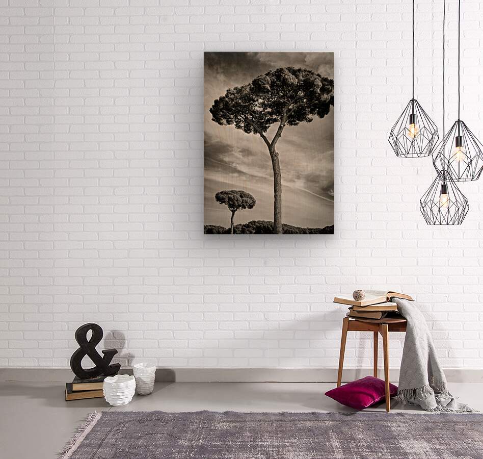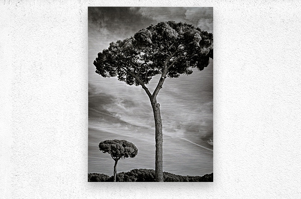 Two trees rise gracefully under a sky filled with textured clouds their presence offering a quiet moment of reflection within Rome’s historic Roman ...[+]