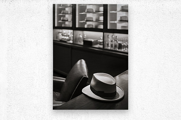 A Panama hat shop in Chicago where a single hat rests on a wooden table inviting a sense of timeless craftsmanship. In the background a vintage leather chair and neatly displayed hats add to the nostalgic atmosphere evoking an era of classic style. A great photograph for those who appreciate heritage tradition and the quiet charm of a well-curated space.