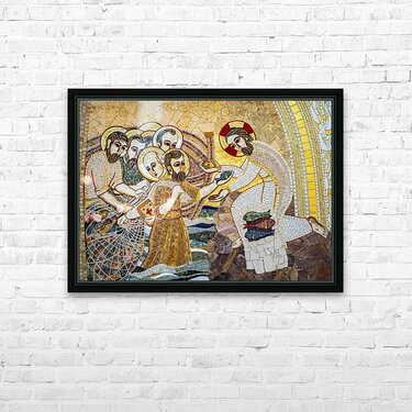 Intricate mosaic work at the Basilica of the National Shrine of the Blessed Virgin of Ta’ Pinu in Gozo Malta depicting the biblical scene of Jesus p...[+]