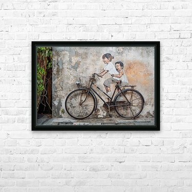 Little Children on a Bicycle Picture Frame Printing