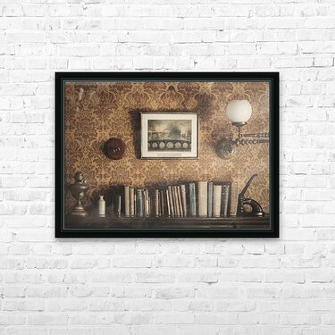 Vintage Bookshelf Picture Frame Printing