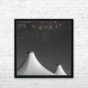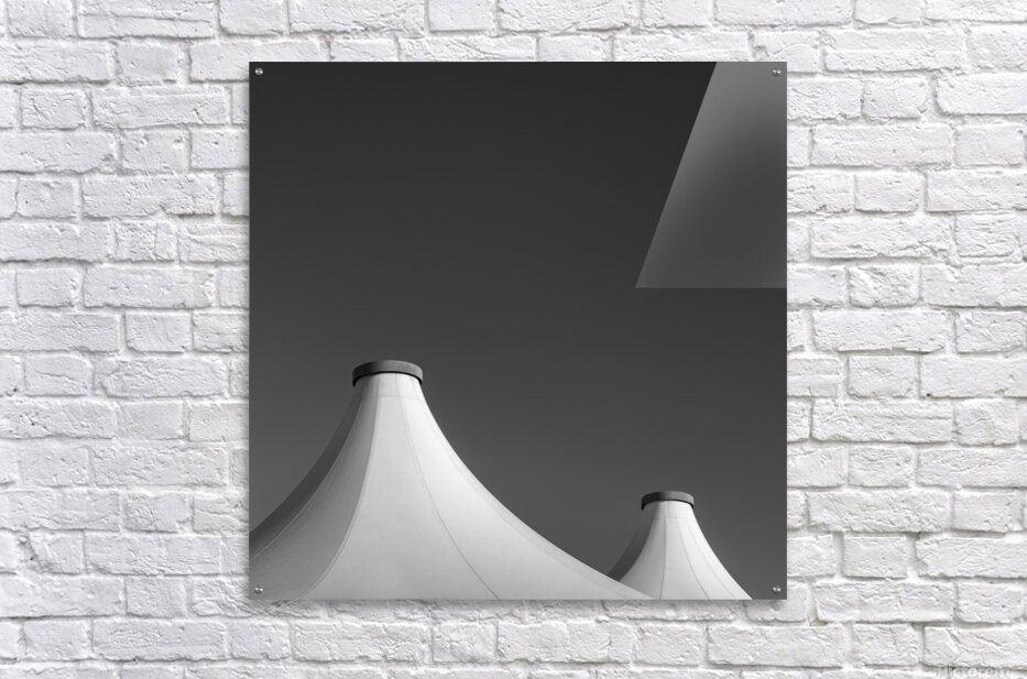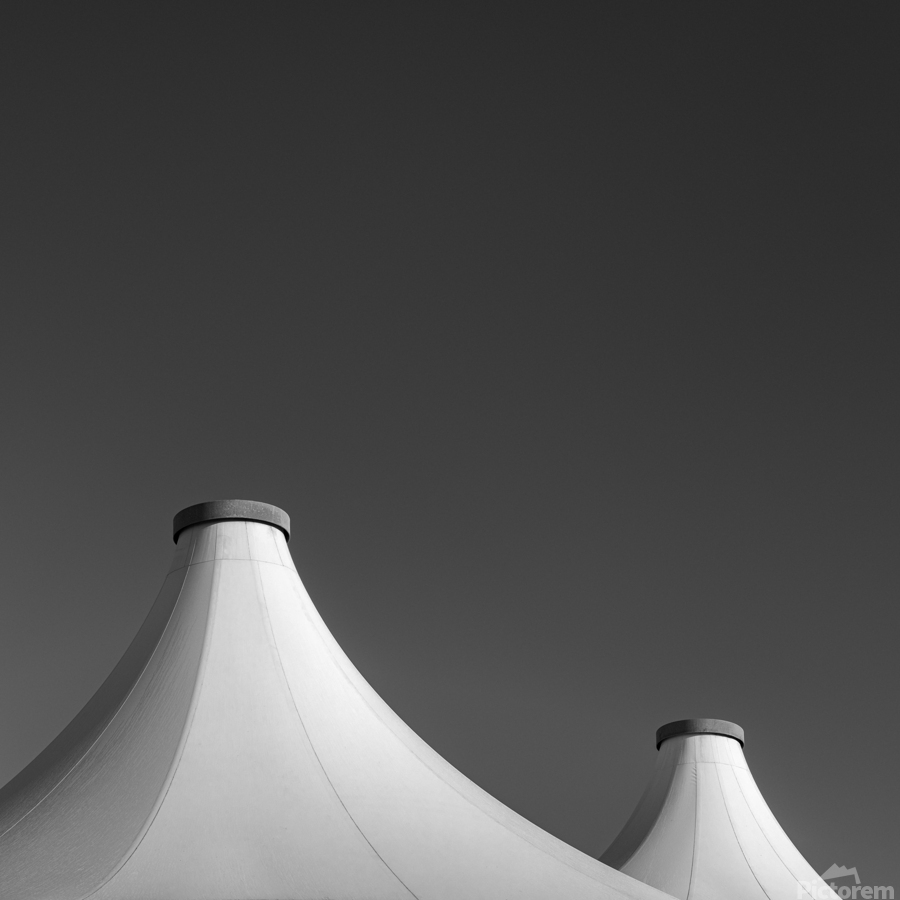 Two white tent tops rise against a clear sky on a sunny day along Aberystwyth promenade in Cardiganshire Wales. Their crisp forms contrast sharply with the open expanse above creating a simple yet striking composition. A great photograph for those who appreciate minimalism and the interplay of shape and space in everyday scenes.