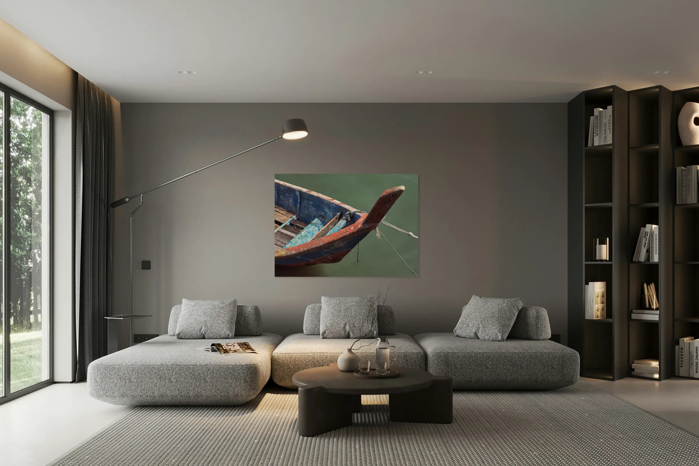 A close-up view of the bow of a weathered Penang fishing boat where layers of peeling paint reveal the wear of time and sea. The rough textures and faded colours tell a quiet story of working waters and coastal life. A great photograph for those who appreciate maritime heritage and the beauty found in age and imperfection.