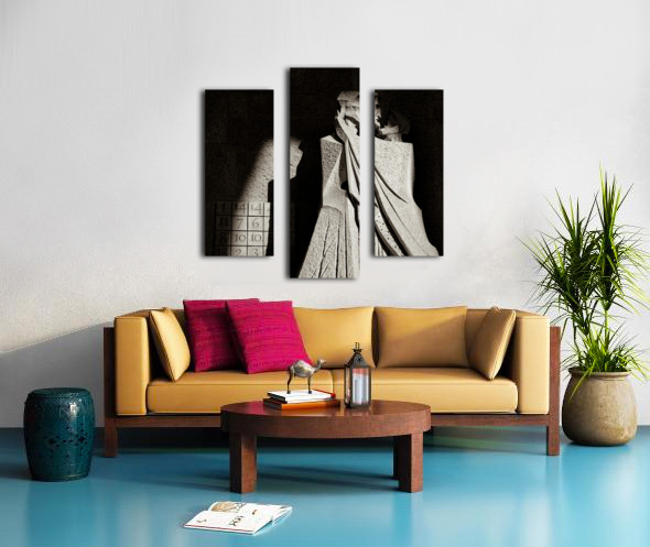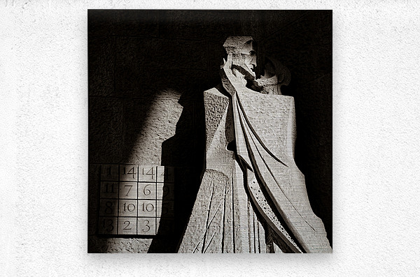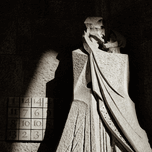 The sculpture known as The Judas Treason also referred to as The Kiss of Judas part of the Passion Facade of Barcelona’s Sagrada Família captured in early morning light. Carved by Josep Maria Subirachs its sharp angular lines are thrown into relief by the shifting light and shadow bringing out the tension and stark emotion in the scene. A great photograph for those drawn to modern religious art and the bold controversial vision that complements Gaudí’s iconic cathedral.