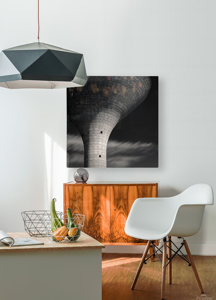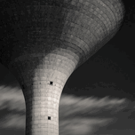 A minimalist view of a water tower in Normandy France captured with soft sunlight catching one side of its surface. The long exposure draws streaks of...[+]
