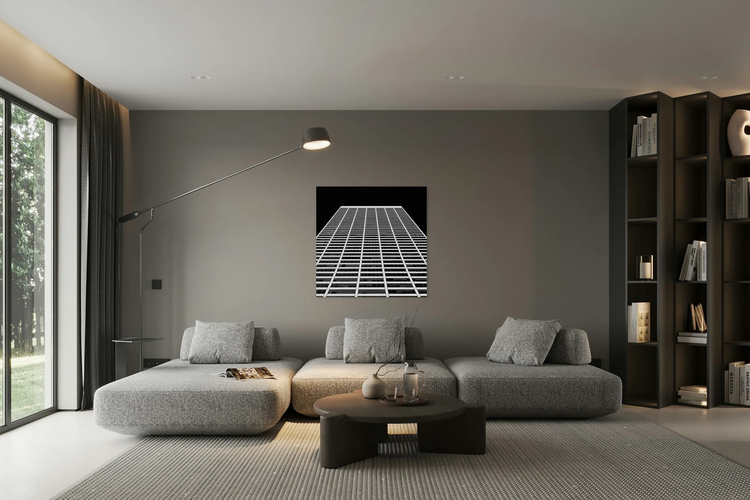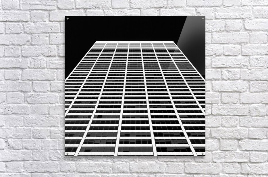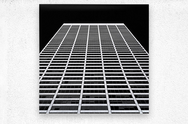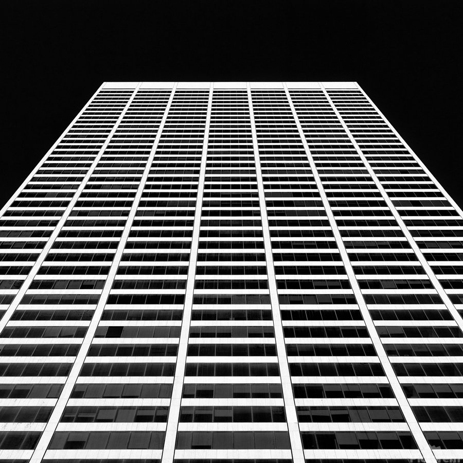 An abstract study of the W.R. Grace Building in New York viewed from a low angle to highlight the sharp geometry and repetition of its straight-edged windows. Set against a dark sky the rigid lines and stark contrasts create a bold graphic composition. A great photograph for those who appreciate architectural minimalism and the interplay of structure and space.