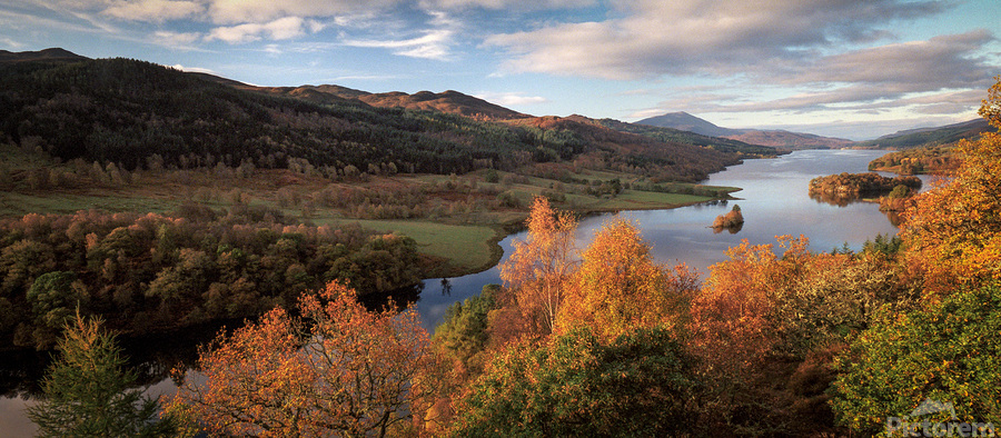 A panoramic view of autumn from Queen’s View near Pitlochry Scotland where the landscape stretches out in a rich tapestry of seasonal colour. Rollin...[+]