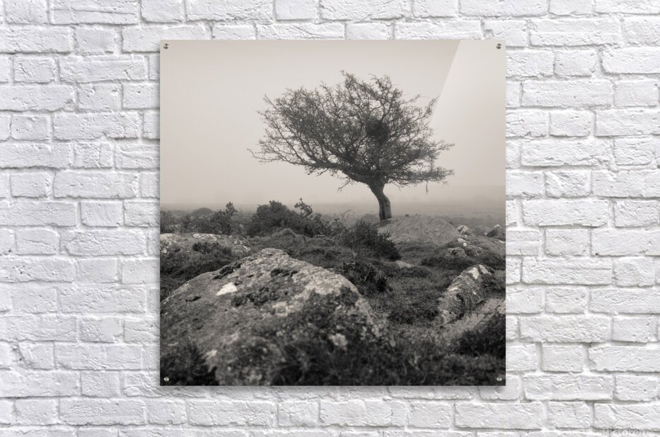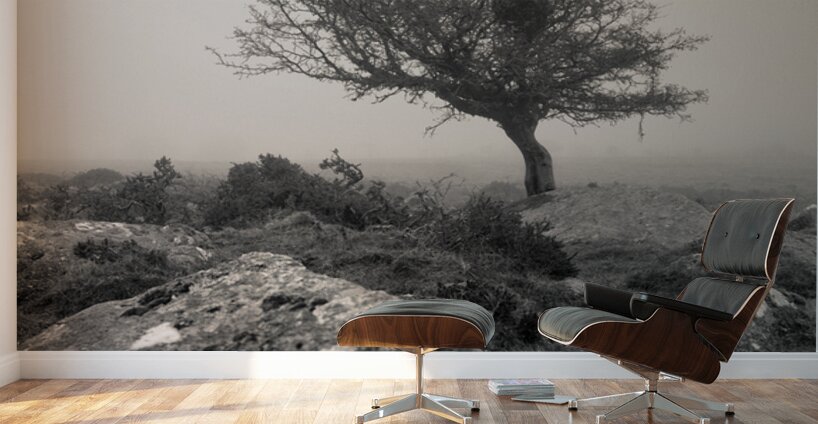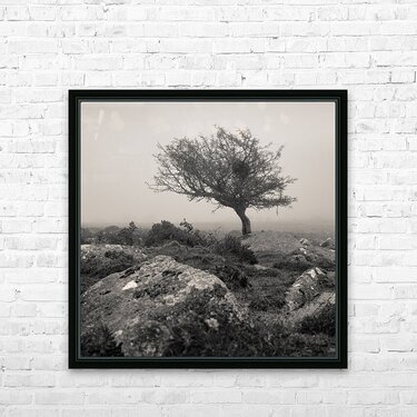 A lone tree stands shaped by the wind on Dartmoor its twisted form emerging from the soft haze of a foggy morning in Devon. The mist mutes the surrounding landscape drawing attention to the tree’s resilient silhouette and the quiet stillness of the moor. A great photograph for those who are drawn to atmospheric rural scenes and the quiet strength found in nature’s more solitary moments.