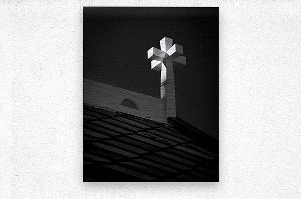 Sunlight glances across the cross on Buksnes Church bringing out the shape and depth of its carved form. The rest of the scene remains in shadow letting the cross stand quietly above the rooftop set against a dark sky. A great photograph for those who find meaning in quiet moments and the understated beauty of northern church architecture.