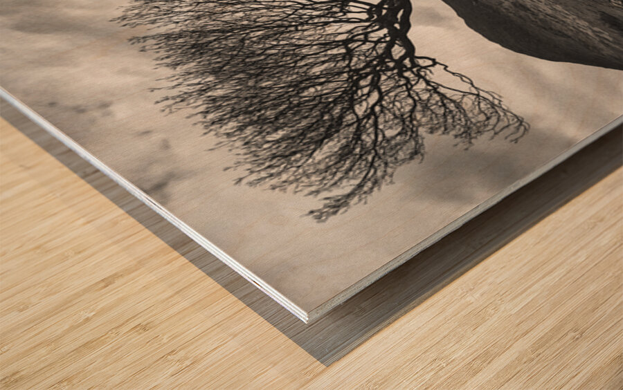 A lone, leafless tree stands on the Isle of Mull in the Inner Hebrides of Scotland, its bare branches reaching into a sky filled with textured cloud. In the foreground, a lichen-covered rock anchors the scene, while a softly rising hill provides a muted backdrop in the distance. This quiet and atmospheric landscape captures the raw, untamed beauty typical of the Scottish isles. Mull, the second-largest island of the Inner Hebrides, is known for its dramatic scenery, weathered terrain, and moody skies, a place where solitary elements in nature often feel deeply symbolic and visually striking. Available as wall art and across a wide range of printed formats and lifestyle products, this piece suits minimalist interiors, nature-themed spaces, and lovers of Scottish landscapes. Please note: This image has a slightly grainy texture because it was photographed on analog film.
