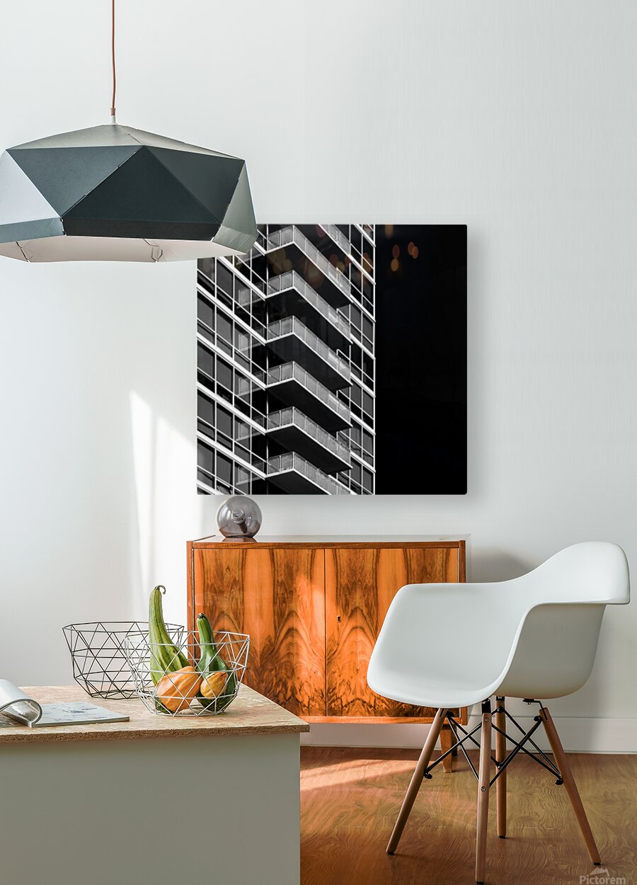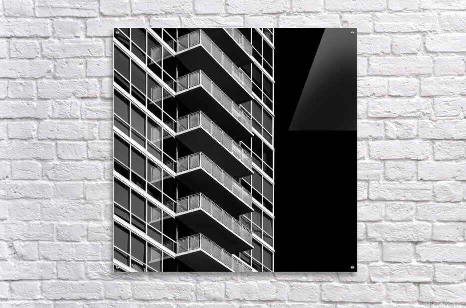 Balconies on a Chicago tower block form a bold semi-abstract pattern in monochrome. Strong black and white tones pick out the lines and edges giving the scene a relief-like look that almost feels like line art. The repetition of shapes creates a rhythm that pulls the eye across the frame. This view turns an everyday building detail into something graphic and striking. Light and shadow carve depth into the structure while the simple palette keeps the focus on the bold geometry of the balconies. This image is available as wall art and across a wide range of formats to suit your space or style. It’s a great choice for spaces that favour clean lines urban themes and strong monochrome design.