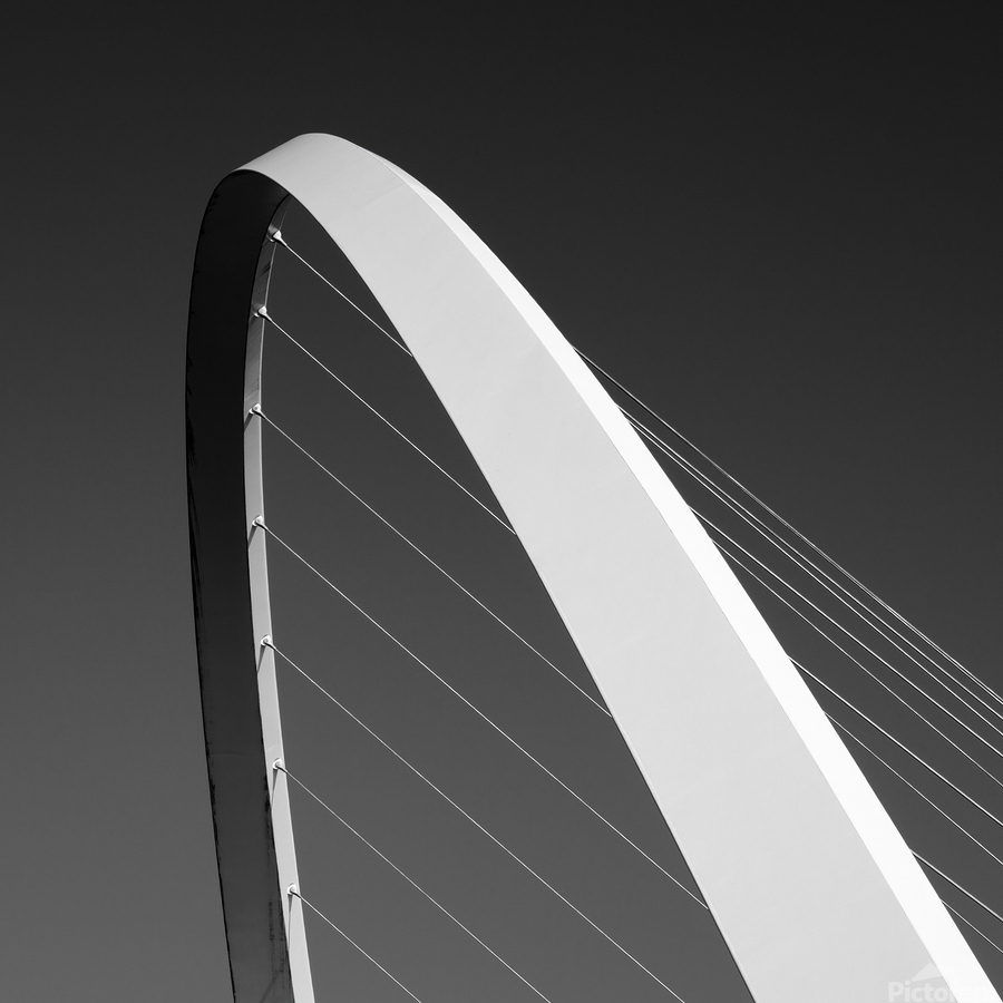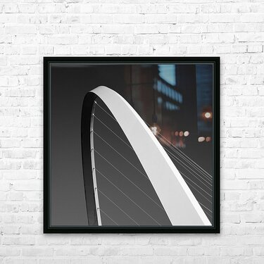 Clean lines and sweeping curves define this abstract monochrome study of the Gateshead Millennium Bridge. The upward view emphasises the elegant arch ...[+]