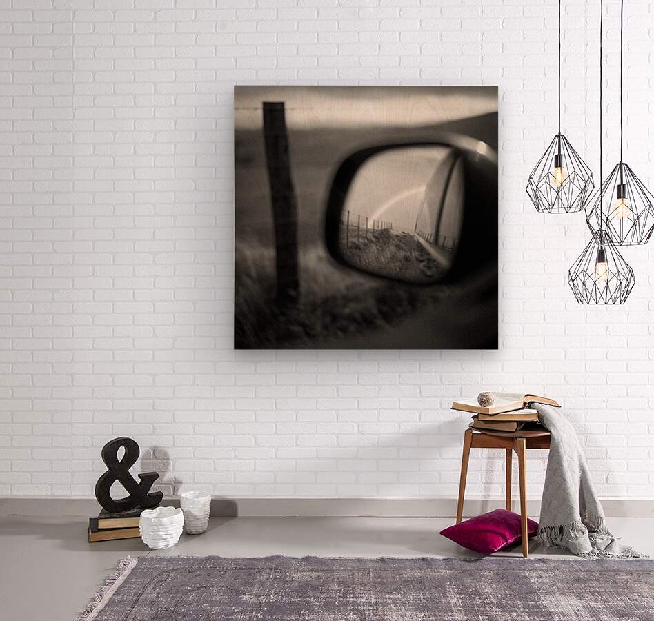 A fleeting rainbow arches across the sky in the rearview mirror captured along a remote road in North Wales. The subtle reflection contrasts beautifully with the surrounding landscape where open fields and weathered fencing hint at the rugged isolation of the location. The perspective transforms a simple roadside moment into something more poetic with the mirror’s frame acting as a window to a passing scene behind a reminder of transient beauty glimpsed on life’s journeys. The monochrome treatment enhances the sense of stillness and reflection stripping the scene back to its essential shapes and textures. This image is available as wall art and across a wide range of formats to suit your space or style and makes a thoughtful piece for those drawn to minimalist compositions quiet landscapes and the beauty of fleeting moments. ..... Please Note: This image is intentionally presented with a grainy texture as part of its aesthetic.