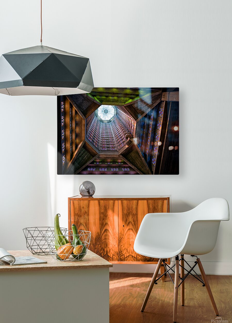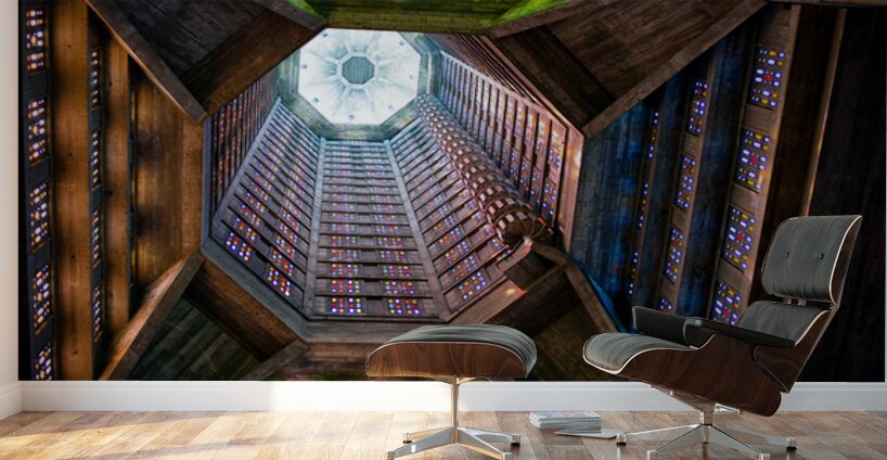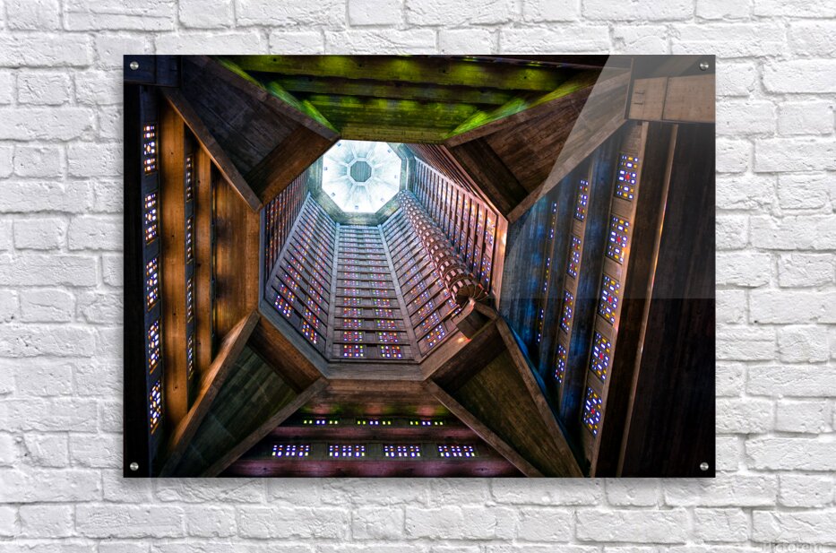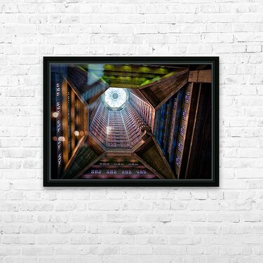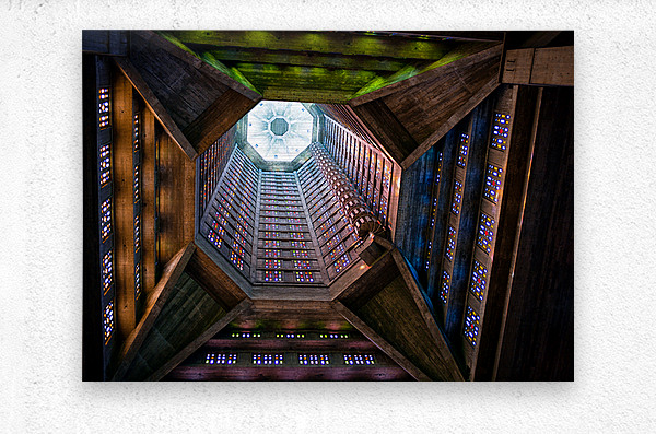 Looking straight up into the soaring spire of St Joseph’s Church in Le Havre, you’re met with a dazzling display of colour and geometry. Light filters through hundreds of stained-glass panels, casting a shifting mosaic across the wooden interior and drawing the eye toward the bright skylight above. It’s an awe-inspiring view that blends bold modern design with a sense of timeless spirituality. Designed by Auguste Perret and completed in the 1950s the church is one of Normandy’s most striking landmarks a powerful symbol of post-war resilience and architectural innovation. Its octagonal tower rises more than 100 metres above the city and from this perspective the structure feels almost infinite a cathedral of light and form that invites quiet contemplation. A perfect photograph for anyone drawn to striking architecture bold perspectives or the beauty of stained glass. This image is available as wall art and across a wide range of formats to suit your space or style.