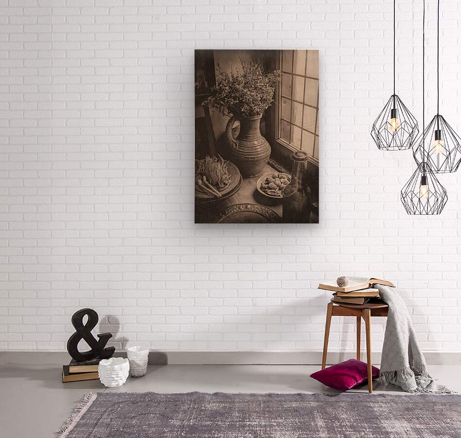 Soft light filters through the leaded window falling gently across a rustic still life on an old farmhouse windowsill. A large earthenware jug filled with dried herbs takes centre stage surrounded by simple bowls of nuts and dried vegetables and a weathered bottle that hints at daily life from centuries past. The textured surfaces and muted tones evoke a quiet timeless atmosphere that feels both intimate and authentic. This evocative scene is from a traditional Dutch farmhouse kitchen in Leiden a historic city in the Netherlands known for its rich cultural heritage and beautifully preserved architecture. Domestic interiors like this offer a glimpse into everyday life in the Dutch Golden Age when such simple practical objects were central to the rhythm of home and family. A perfect photograph for lovers of still life history or traditional European interiors. This image is available as wall art and across a wide range of formats to suit your space or style. ..... Please Note: This image is intentionally presented with a grainy texture as part of its aesthetic.