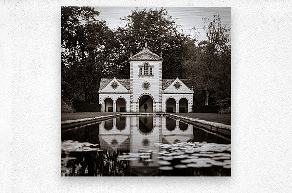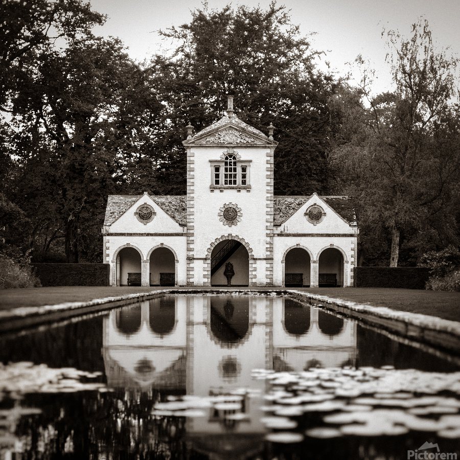 The Pin Mill reflects perfectly in the still surface of the Lily Pond at Bodnant Garden its symmetry and elegance captured in quiet detail. The soft monochrome tones draw out the textures of stone and slate while the calm water adds a sense of balance and stillness to the scene. It’s a moment of quiet beauty where architecture and nature come together in harmony. Built around 1730 in Woodchester Gloucestershire the Pin Mill was once a working pin factory before being moved to Bodnant Garden in 1938 by Henry McLaren 2nd Baron Aberconway. Today it stands as one of the garden’s most recognisable landmarks combining Georgian grace with a timeless serenity that fits perfectly within its Welsh landscape. A wonderful image for anyone who appreciates classical architecture landscaped gardens or tranquil reflections. This image is available as wall art and across a wide range of formats to suit your space or style.