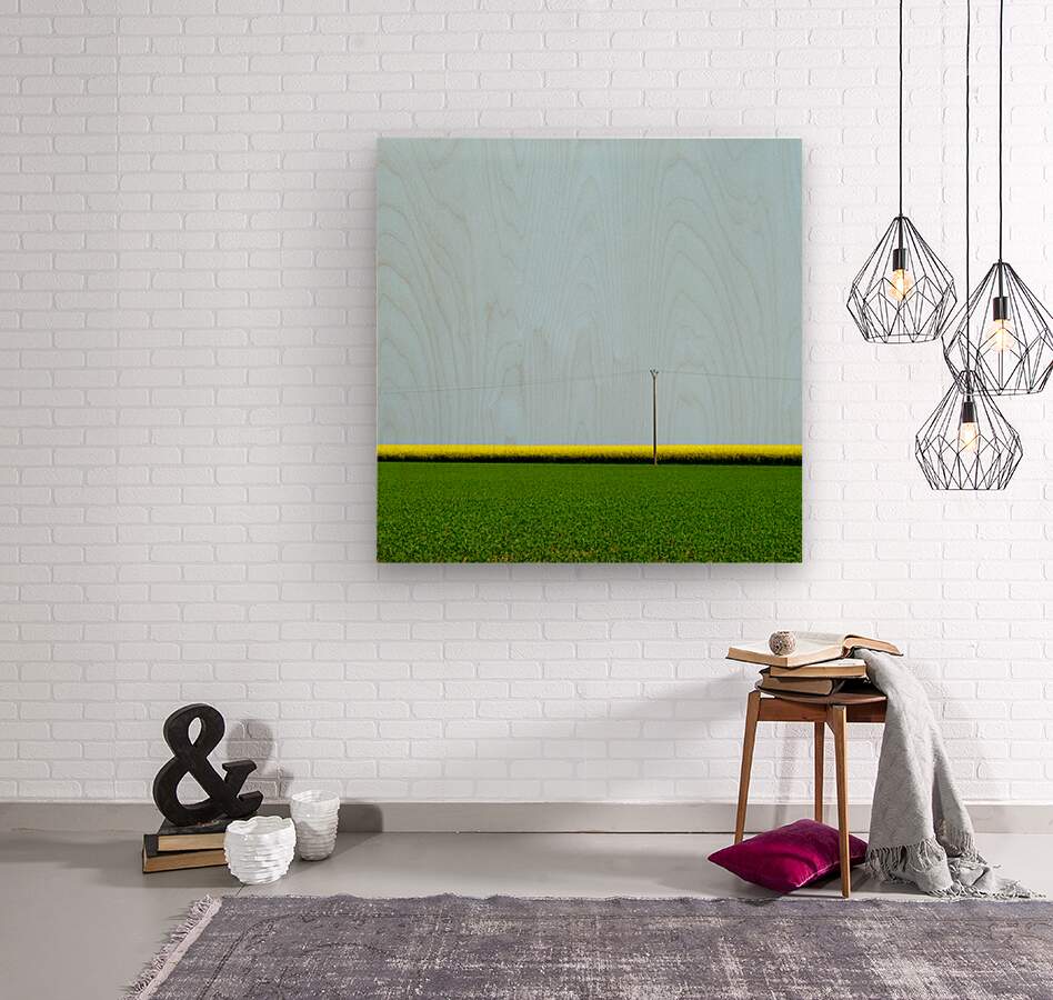 A single telegraph pole stands in the open countryside dividing clean bands of green yellow and blue beneath a cloudless sky. The mustard field stretches in a bright horizontal strip between the fresh green of new growth and the clear light of a spring day creating a sense of balance and calm simplicity within the frame. Taken in the Normandy region of France this scene captures the quiet beauty of rural farmland where colour and structure meet in perfect harmony. The open landscape and soft tones reflect the timeless rhythm of the countryside shaped by both nature and human presence. A perfect photograph for lovers of minimalism and tranquil rural scenes. This image is available as wall art and across a wide range of formats to suit your space or style.