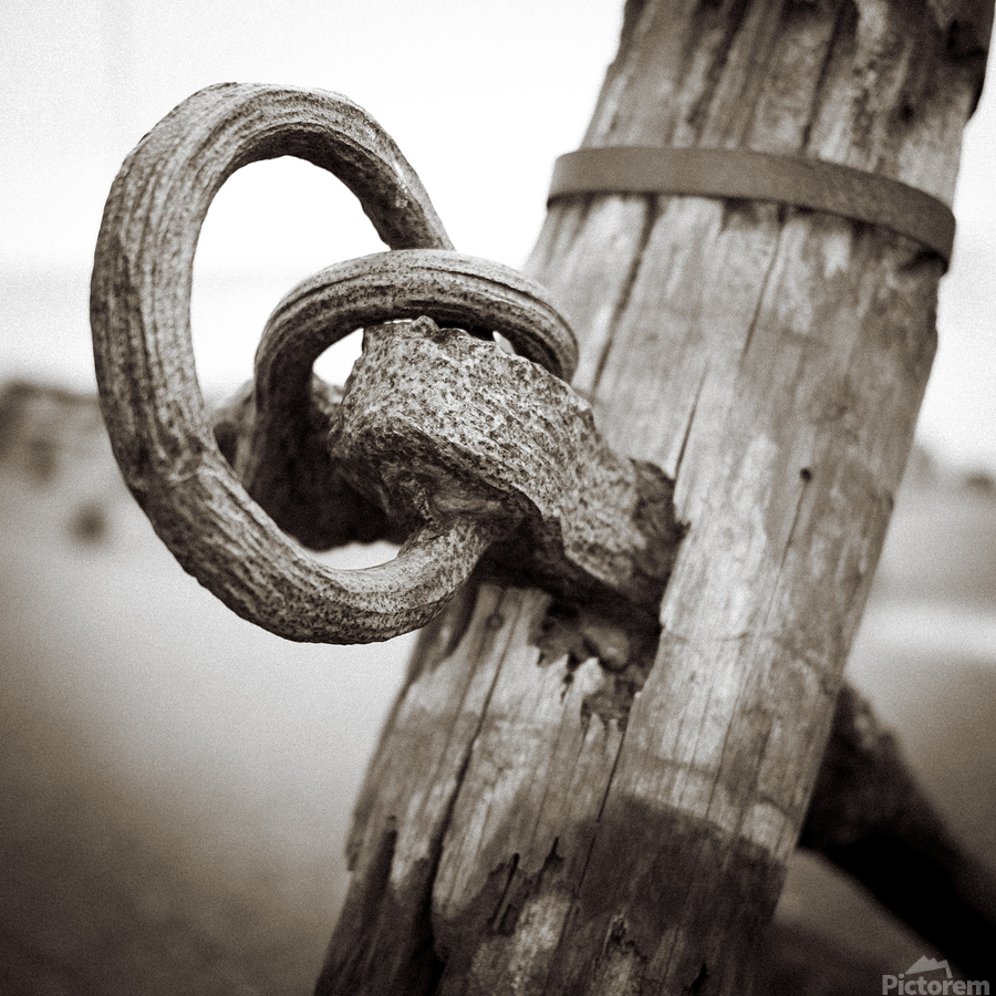 The rusted iron ring and cracked timber of an old ship’s anchor create a striking study in age and texture. Every mark tells of years spent at sea and in the elements giving the scene an authentic weathered character that feels grounded and real. The close composition highlights the craftsmanship and strength of a piece that once served a vital purpose. Photographed at Holyhead Marina on Anglesey North Wales this is the top section of an old anchor — a small reminder of the island’s long maritime heritage. The harbour remains an active hub for fishing and sailing but fragments like this quietly connect it to centuries of seafaring history. A great image for anyone drawn to coastal heritage industrial detail or timeless textures. This image is available as wall art and across a wide range of formats to suit your space or style. ..... Please Note: This image is intentionally presented with a grainy texture as part of its aesthetic.