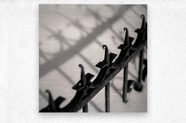 A close-up study of old wrought-iron railings dusted with rust their pointed tips casting sharp repeating shadows across freshly fallen snow. The monochrome tones heighten the contrast between the dark metal and the soft untouched surface below creating a quiet interplay of form and texture. Photographed in Tallinn Estonia this image captures the character of the city’s historic architecture even in its smallest details. The aged metalwork and the fleeting moment of winter light evoke a sense of stillness typical of Tallinn’s colder months when the old streets and courtyards fall silent beneath a blanket of snow. A perfect photograph for lovers of architectural detail and minimalist winter scenes. This image is available as wall art and across a wide range of formats to suit your space or style. ..... Please Note: This image is intentionally presented with a grainy texture as part of its aesthetic.