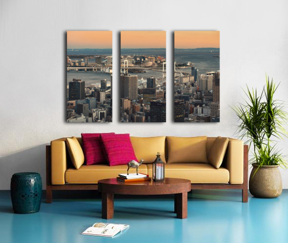 Tokyo Bay opens out beneath the city as the light softens and the buildings settle into the quieter pace of evening. Rainbow Bridge stretches across the water with calm confidence linking the dense blocks of the city to the open space of the bay beyond. There is a balance here between scale and stillness where the weight of the skyline is eased by the water and the fading warmth in the sky. Rainbow Bridge is one of Tokyo’s most recognisable landmarks spanning Tokyo Bay and connecting central Tokyo with the Odaiba waterfront. Completed in 1993 it has become a symbol of the city’s modern expansion and its relationship with the surrounding water. This view captures the transition from day to night a familiar moment in a city that never truly stops moving. A great image for lovers of cityscapes modern architecture and Japanese urban scenes. This image is available as wall art and across a wide range of formats to suit your space or style.
