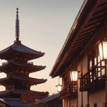 An evening view of Yasaka Pagoda rises calmly above the traditional rooftops of Higashiyama in Kyoto its tiered silhouette set against a soft fading s...[+]