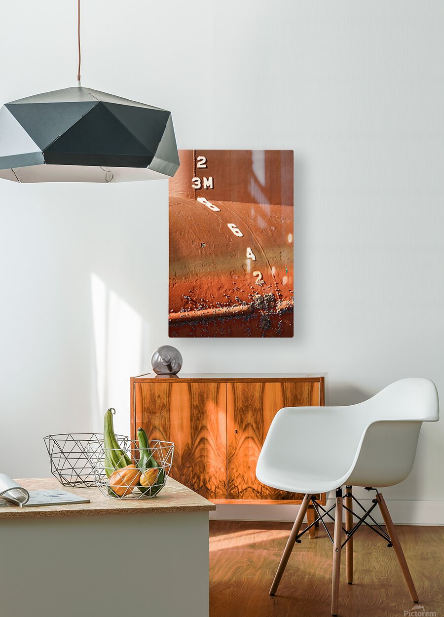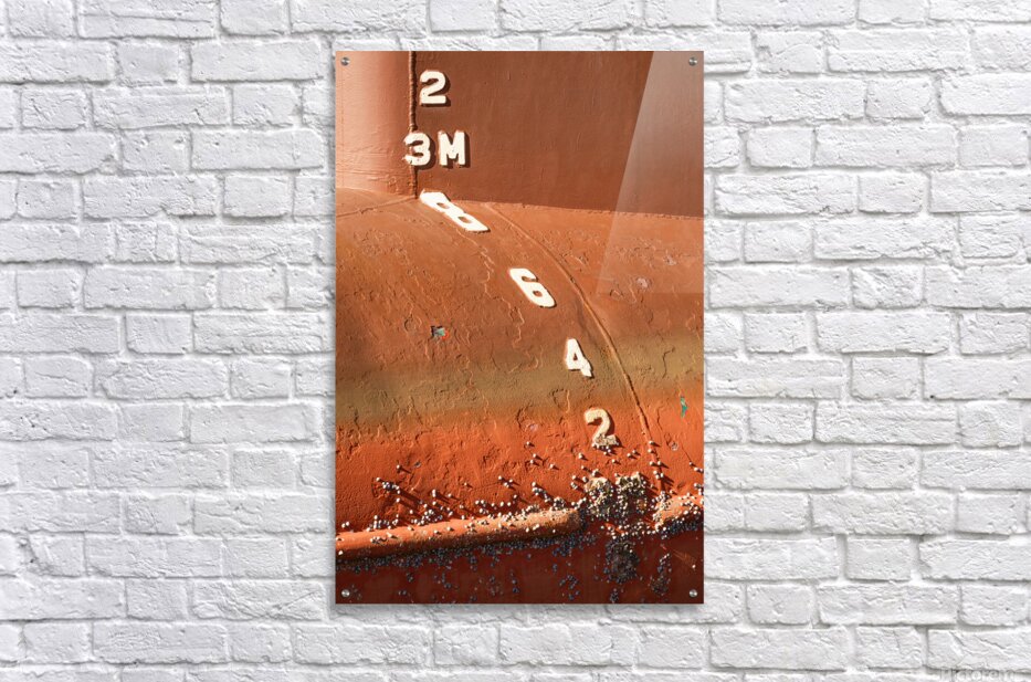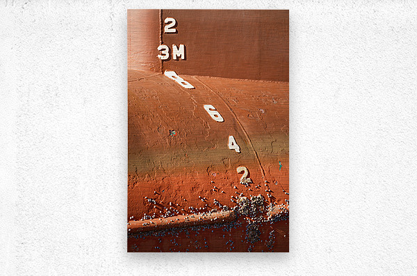 Draught markings cut through layers of painted red hull pock marks and surface wear on a boat moored in Osaka harbour creating a strong tactile image rooted in function rather than decoration. The contrast between the clean stencilled numbers and the worn paintwork gives the surface a quiet visual tension where everyday utility becomes the main point of interest. It is an image that draws attention through texture and repetition rather than spectacle. Osaka is one of Japan’s major port cities with a long history shaped by shipping trade and working harbours like this. Draught numbers are essential reference points used to judge depth and loading while the weathering and marine growth reflect constant exposure to water movement and time. These marks are the natural result of use telling a straightforward story of a vessel that works for a living. A perfect photograph for those drawn to industrial details maritime subjects or imagery that values surface wear and quiet authenticity. This image is available as wall art and across a wide range of formats to suit your space or style.
