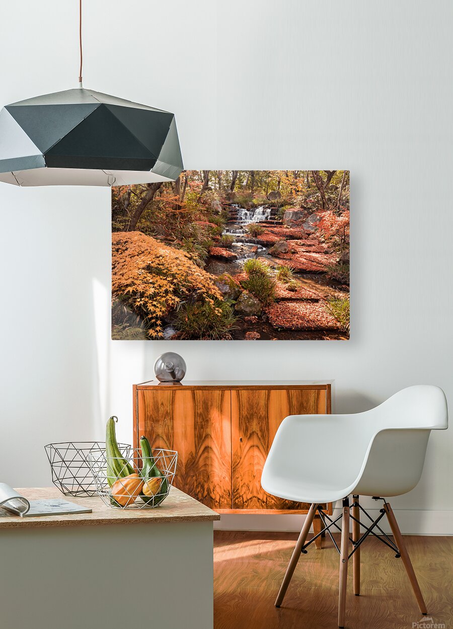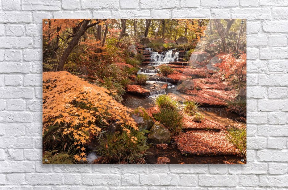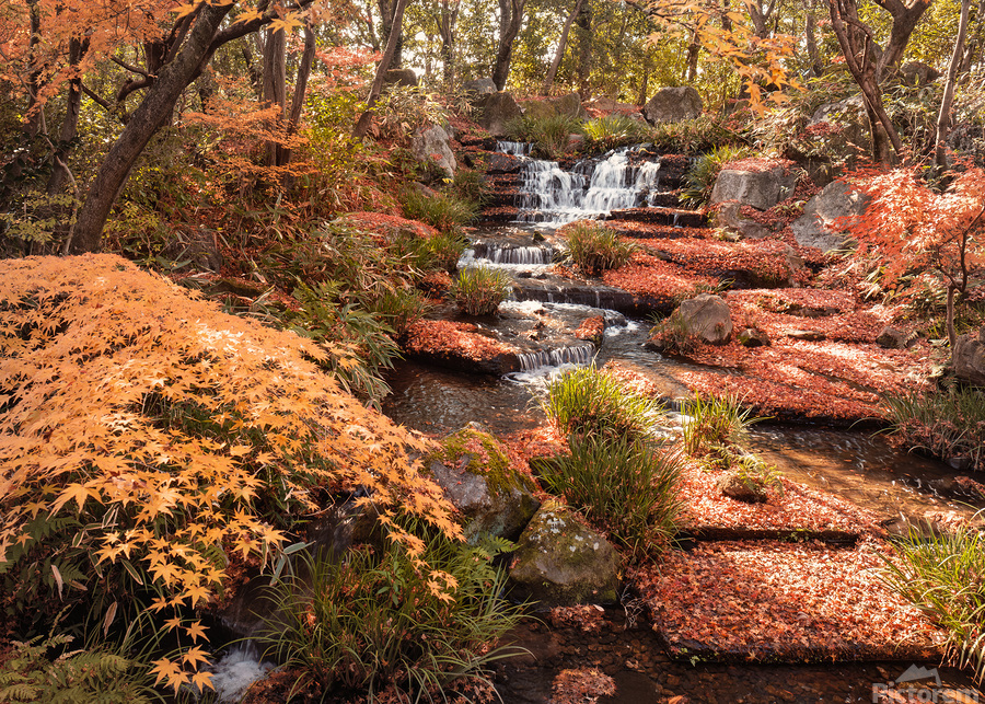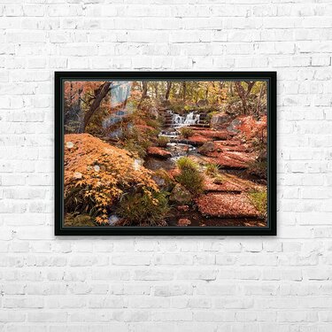 Autumn settles gently over Kokoen Garden as a shallow stream steps its way through stone channels scattered with fallen maple leaves in deep reds and warm oranges. The scene feels calm and balanced with water rock and foliage working together to create a quiet rhythm that invites the eye to slow down and linger. It is the kind of place that feels designed for reflection where nothing competes for attention and everything sits in harmony. Kokoen Garden sits beside Himeji Castle and is known for its carefully composed landscapes that change character with the seasons. In autumn the garden becomes especially rich in colour and texture with leaves gathering along the water’s edge and soft cascades guiding the flow downstream. The stepped layout of the stream draws the viewer naturally through the frame reinforcing the sense of order and intention that defines traditional Japanese garden design. This image works beautifully in spaces where a sense of calm and natural balance is valued from living rooms to offices or quiet corners meant for pause and reflection. This image is available as wall art and across a wide range of formats to suit your space or style.