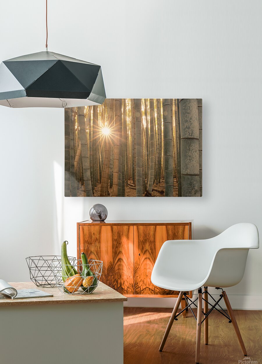 Sunlight slips quietly between the bamboo trunks in Arashiyama creating small pockets of space where the forest seems to breathe. The tightly packed stems give way just enough to moments of pause and separation that invite the eye to slow down and wander. It’s this sense of space between things that gives the scene its calm presence a visual expression of ma where stillness and structure exist side by side without competing for attention. Arashiyama Bamboo Forest on the western edge of Kyoto is one of Japan’s most recognisable natural landmarks. The bamboo grows tall and close together forming a landscape defined by rhythm scale and subtle shifts in light throughout the day. Moments like this when the sun filters cleanly through the grove reveal the forest at its most serene and contemplative. A perfect photograph for interiors that suit calm natural imagery with a strong sense of balance and order. This image is available as wall art and across a wide range of formats to suit your space or style.
