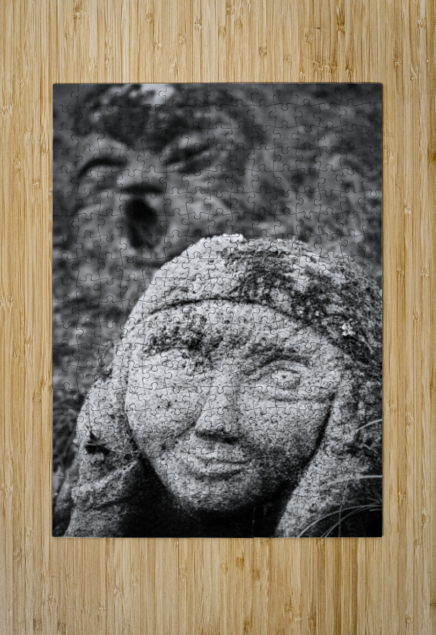 Tucked among the moss and undergrowth at Otagi Nenbutsu-ji Temple in Kyoto’s Arashiyama district this small Rakan stone face carries a quietly mischievous expression as if caught mid thought. There is something disarmingly human in the slight smile and softened features a moment of personality emerging from weathered stone that feels both playful and unexpectedly intimate. Otagi Nenbutsu-ji is home to more than a thousand hand carved Rakan statues each one created with its own distinct character rather than a uniform design. These figures represent disciples of the Buddha and their varied expressions are part of what makes the temple grounds so compelling to explore. A perfect photograph for collectors of Japanese temple art characterful stone sculpture and unique details from Kyoto’s Arashiyama district. This image is available as wall art and across a wide range of formats to suit your space or style.