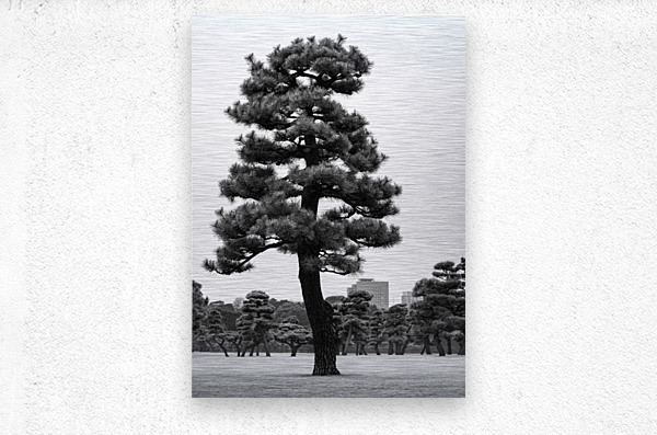 Standing quietly within the open grounds of Kokyo Gaien National Garden in central Tokyo this Japanese black pine rises with a form that feels both deliberate and natural. Its carefully shaped branches spread outward in layered tiers a distinctive silhouette that has long been associated with traditional Japanese garden design. Set against the wide lawn and the distant shapes of other pines the tree holds the scene with a calm and balanced presence. Kokyo Gaien forms part of the outer grounds of the Tokyo Imperial Palace a large public space that surrounds the historic heart of Japan’s imperial residence. The gardens are known for their expansive lawns and carefully maintained pine trees many of which have been shaped over decades to preserve the elegant forms typical of Japanese landscape traditions. A perfect photograph for collectors of Japanese garden scenes traditional landscape design and tranquil studies of nature in Tokyo. This image is available as wall art and across a wide range of formats to suit your space or style.