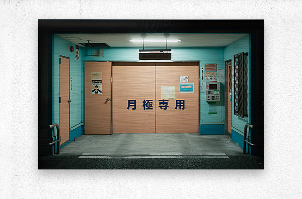 Set within a quiet corner of Osaka this closed-off parking entrance feels oddly self-contained its soft colours and clean lines giving it a calm almost staged presence. The bold lettering across the doors adds a sense of purpose and restriction hinting at a space that operates just out of reach where access is controlled and movement happens behind the surface. This is the entrance to a tsukigime mechanical parking system a common feature in dense urban areas across Japan where space is limited. The text indicates the facility is reserved for monthly contract users only with vehicles stored and retrieved through an automated multi-level system operated via the control terminal beside the doors. A perfect photograph for those drawn to urban details subtle compositions and the quiet order of everyday infrastructure. This image is available as wall art and across a wide range of formats to suit your space or style.