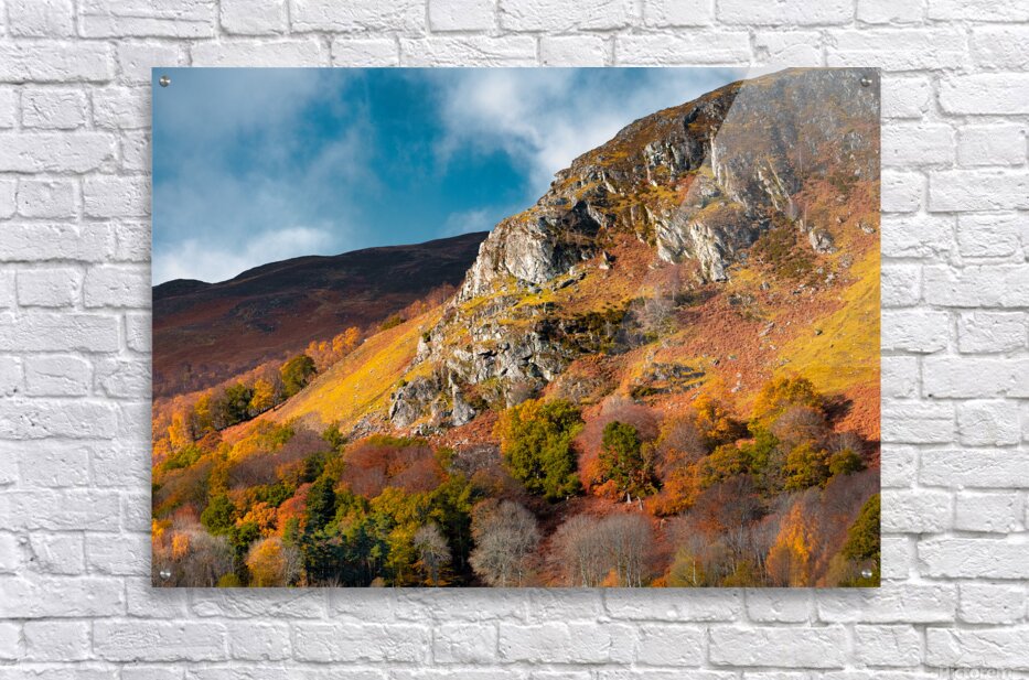 Sunlight catches the craggy face of Craigower above Pitlochry in Highland Perthshire bringing out the deep rust tones of bracken and the rich golds and oranges of autumn trees scattered across the slope. There’s a warmth to the scene that softens the ruggedness a brief seasonal moment where the hillside feels alive with colour before it fades back into winter. Craigower sits within what’s often known as “Big Tree Country” an area celebrated for its dense woodlands and strong autumn displays. The mix of native trees and open hillside creates this layered patchwork of colour set against the more exposed rock that defines the character of the landscape. A perfect photograph for those drawn to autumn landscapes rich natural colour and the changing seasons in the Scottish Highlands. This image is available as wall art and across a wide range of formats to suit your space or style.