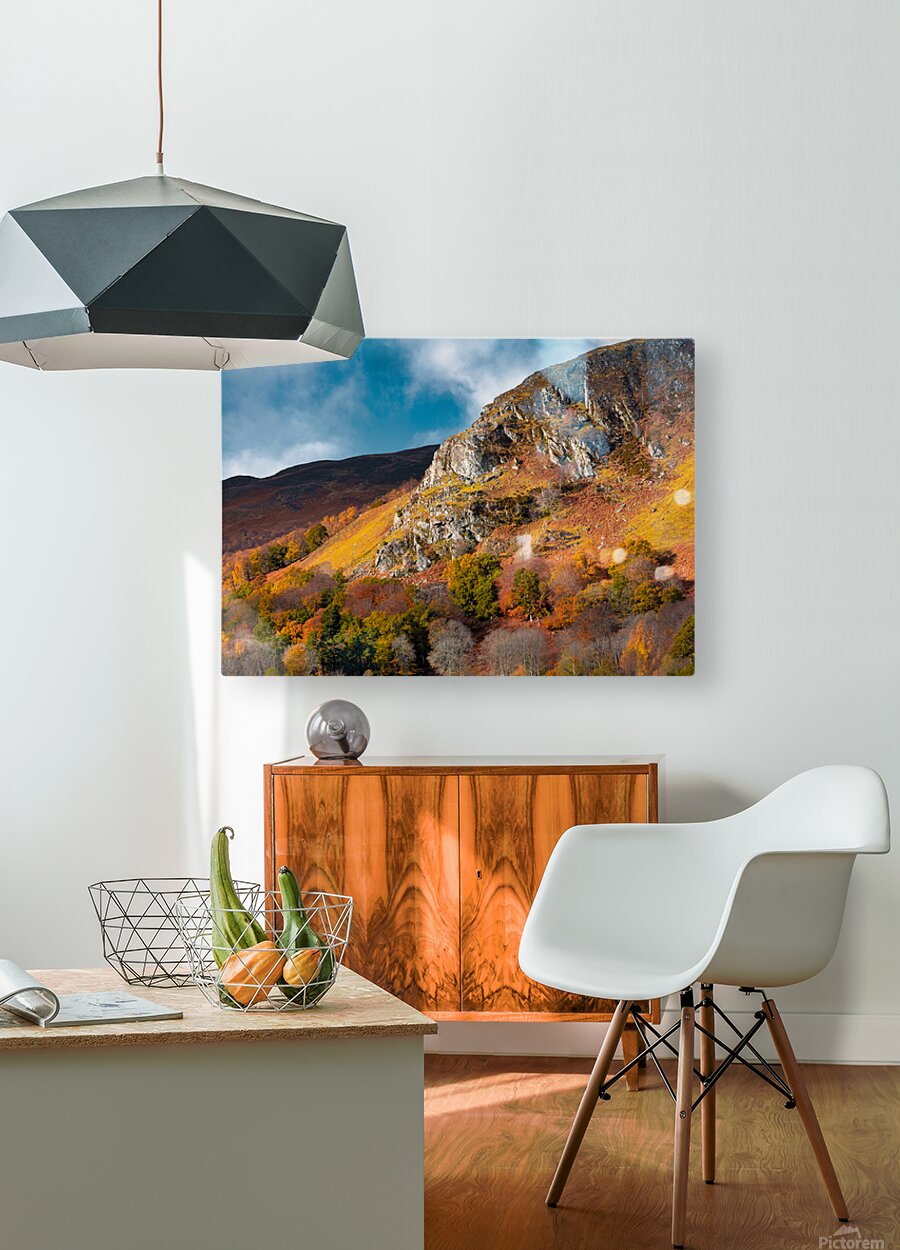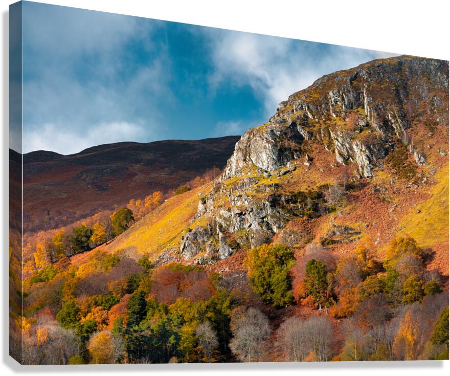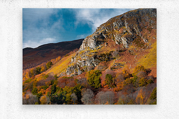 Sunlight catches the craggy face of Craigower above Pitlochry in Highland Perthshire bringing out the deep rust tones of bracken and the rich golds and oranges of autumn trees scattered across the slope. There’s a warmth to the scene that softens the ruggedness a brief seasonal moment where the hillside feels alive with colour before it fades back into winter. Craigower sits within what’s often known as “Big Tree Country” an area celebrated for its dense woodlands and strong autumn displays. The mix of native trees and open hillside creates this layered patchwork of colour set against the more exposed rock that defines the character of the landscape. A perfect photograph for those drawn to autumn landscapes rich natural colour and the changing seasons in the Scottish Highlands. This image is available as wall art and across a wide range of formats to suit your space or style.