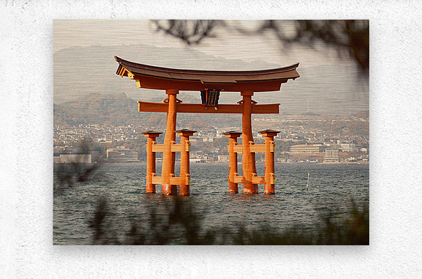 In Miyajima Japan the Great Torii of Itsukushima Shrine rises from the water with a steady unmistakable presence its vivid vermilion structure set against the open expanse of sea and sky. Viewed through a foreground of softened leaves the scene feels carefully framed and slightly removed offering a more personal take on a landmark often seen at a distance. The balance between scale and restraint gives the image a quiet sense of control without losing its impact. Located on Miyajima Island the Great Torii forms part of the historic Itsukushima Shrine and is widely regarded as one of Japan’s defining Shinto sites. At high tide the gate appears to stand directly on the water its bold form and colour creating a strong contrast against the surrounding landscape. It is a setting that carries both historical importance and a naturally contemplative atmosphere. This image is ideal for collectors of Japanese landmarks and spiritual architecture offering a slightly more grounded and considered view of an iconic location. Available as wall art and across a wide range of formats to suit your space or style.