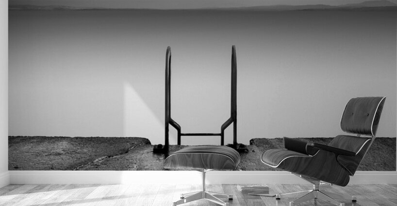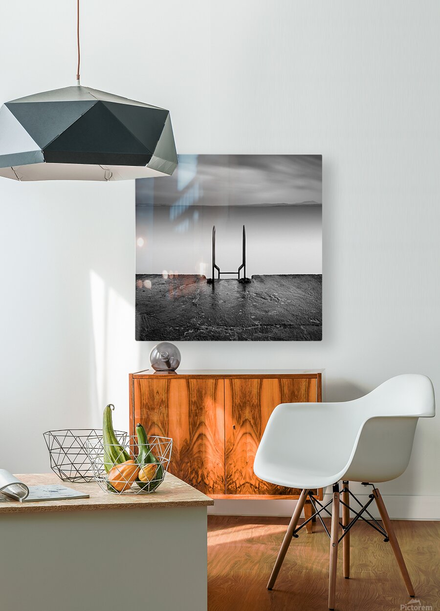 A simple ladder drops from the edge of a jetty into calm flattened water in Port Charlotte on the Isle of Islay the scene stripped back to just a few quiet elements. The long exposure softens everything beyond the concrete leaving a stillness that feels almost suspended with the ladder acting as a quiet invitation into the open space beyond. Port Charlotte sits along the shores of Loch Indaal in the Inner Hebrides a place known for its wide horizons and changing light. Scenes like this reflect the slower rhythm of the island where small functional details like a jetty ladder take on a stronger presence against the openness of sea and sky. A perfect photograph for those drawn to minimalist seascapes quiet coastal moments and the understated character of Scotland’s west coast. This image is available as wall art and across a wide range of formats to suit your space or style.