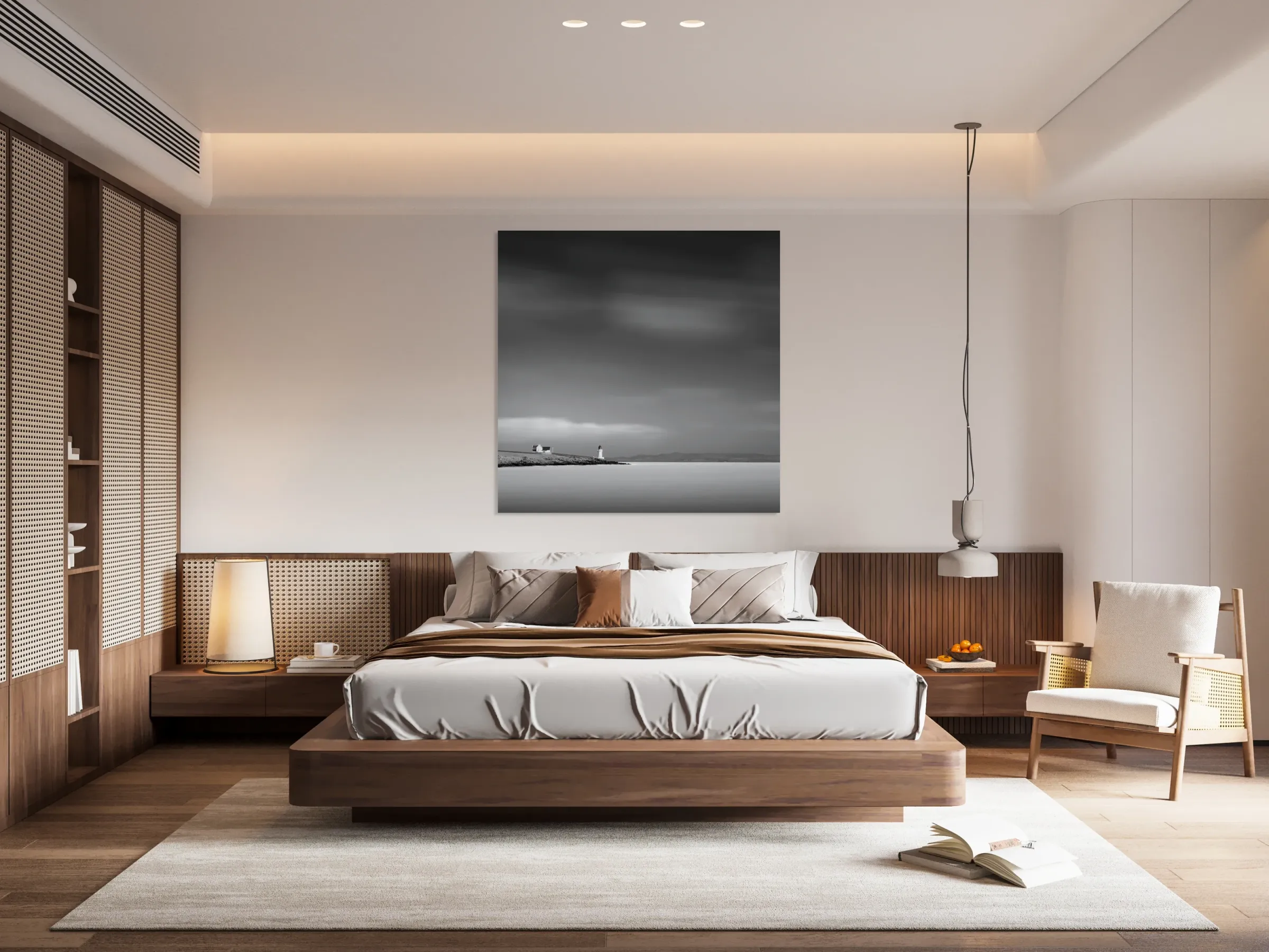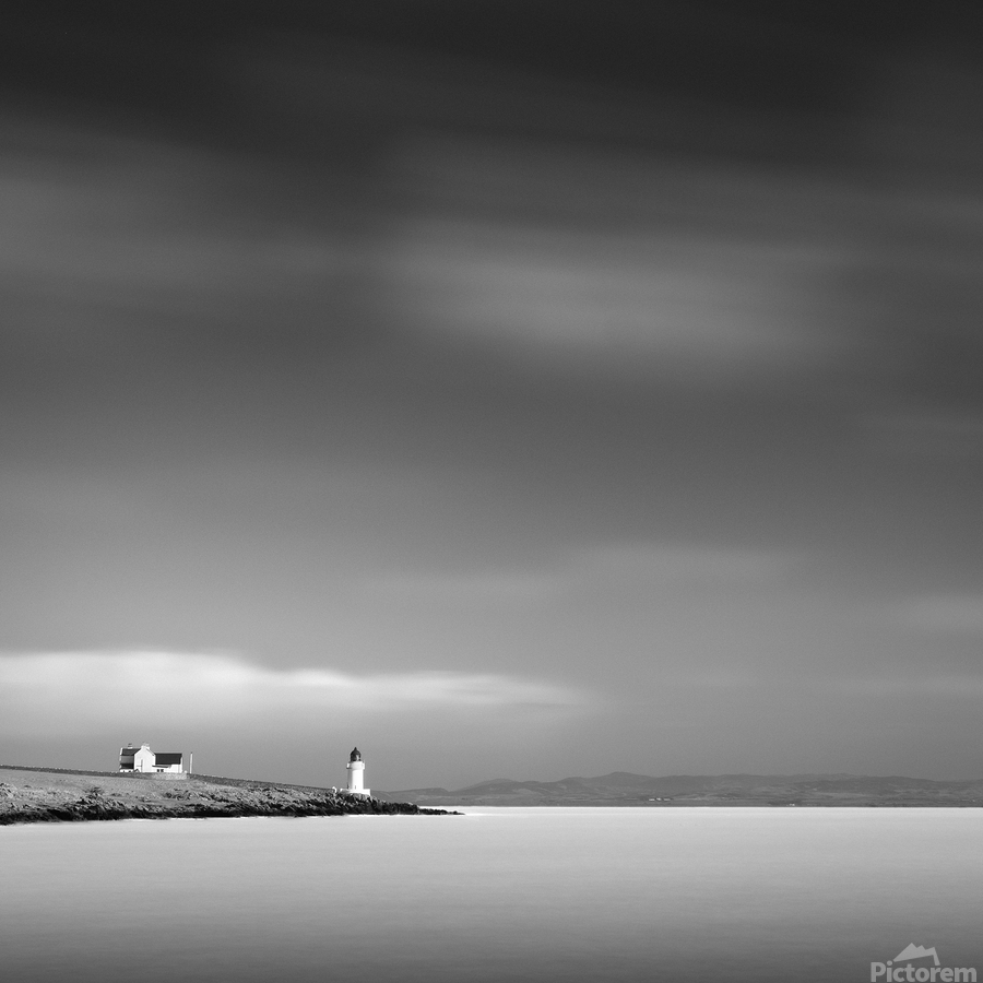 Set against a wide expanse of still water Port Charlotte Lighthouse stands quietly at the edge of Loch Indaal its simple white form and adjoining buildings held in sharp contrast to the open space around it. The long exposure smooths the sea into a flat uninterrupted surface while the heavy sky above adds weight without distracting from the clean minimal composition. Also known as Loch Indaal Lighthouse it marks the shoreline of Port Charlotte on the Isle of Islay in Scotland’s Inner Hebrides. The structure serves as a modest but important navigational point along this sheltered stretch of coast where the landscape is defined as much by openness as it is by detail. A perfect photograph for those drawn to minimalist coastal scenes lighthouses and the quiet character of Scotland’s island shorelines. This image is available as wall art and across a wide range of formats to suit your space or style.
