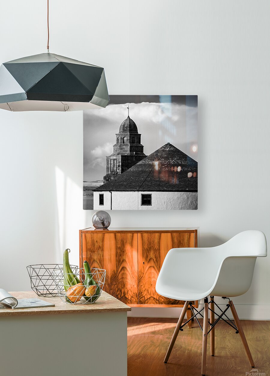 The rounded form of Bowmore Round Church rises solidly against the sky its simple white walls and slate roof giving way to the taller stone tower behind. The composition keeps things tight and balanced with the curve of the building drawing the eye while the darker tower adds weight and contrast to the scene. Officially known as Kilarrow Parish Church it sits at the top of Main Street in Bowmore on the Isle of Islay and dates back to 1767. Its circular design is unusual for a church of its time and local legend suggests it was built this way so there would be no corners for the devil to hide. A perfect photograph for those drawn to historic architecture distinctive design and the character of Scotland’s island communities. This image is available as wall art and across a wide range of formats to suit your space or style.