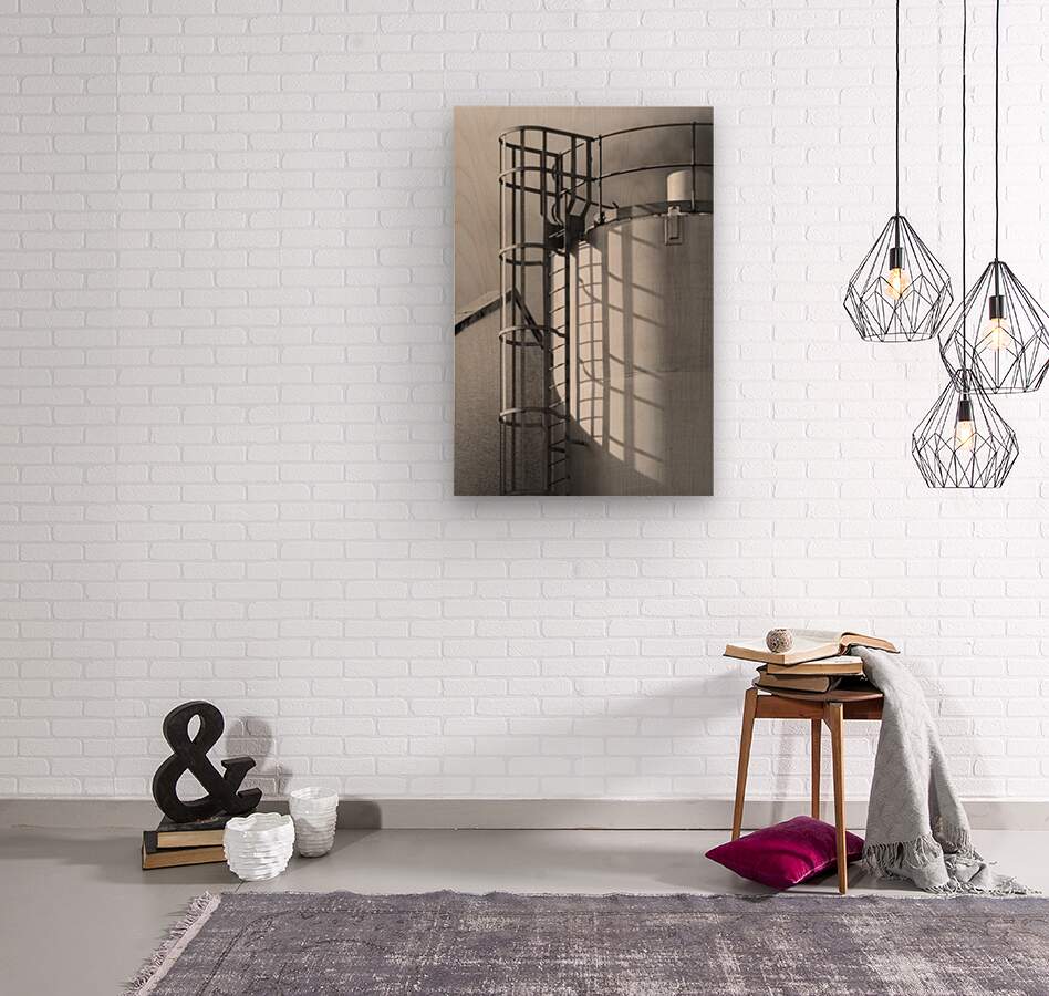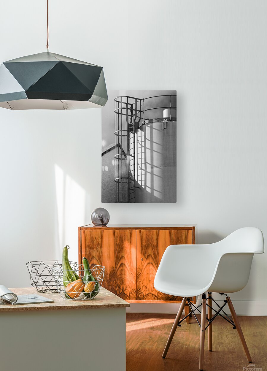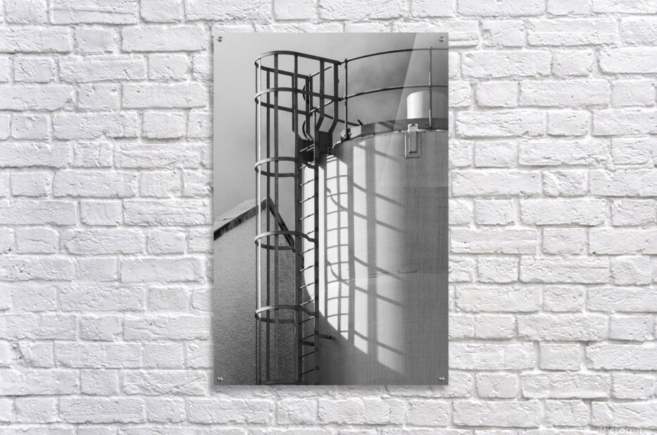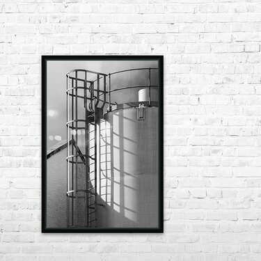 Metal steps lead up the side of the grain silo at Jura Distillery their rigid lines casting a pattern of shadows across the smooth curved surface. It’s a simple striking arrangement where light and structure come together turning a purely functional part of the distillery into something visually engaging. Located on the Isle of Jura in Scotland’s Inner Hebrides the distillery has been part of the island’s identity since the early 19th century. Its working buildings like this grain silo reflect the practical side of whisky production where function shapes form in straightforward purposeful ways. A perfect photograph for those drawn to industrial details clean structure and the quieter elements of Scotland’s whisky heritage. This image is available as wall art and across a wide range of formats to suit your space or style.