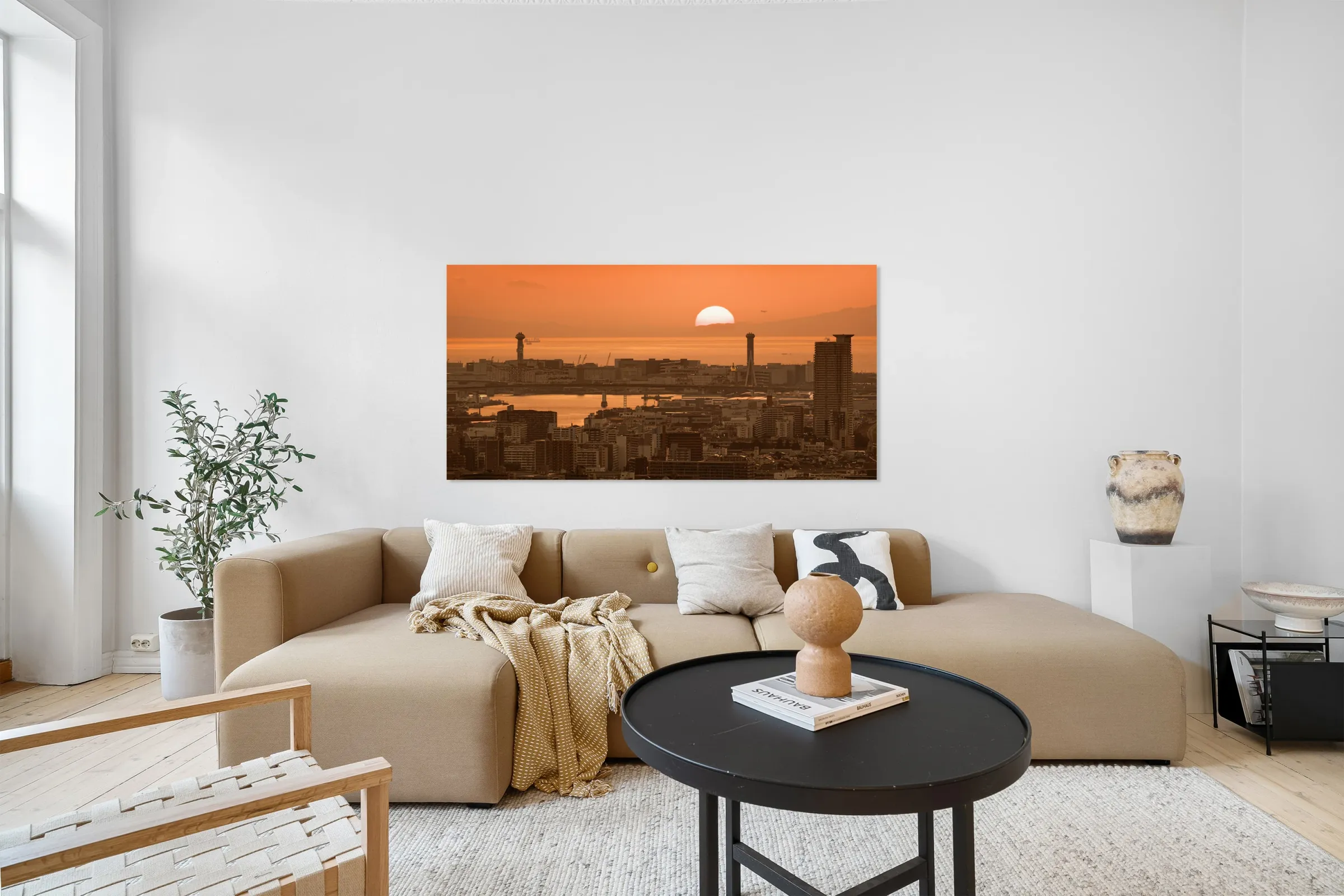 The sun sits low over Osaka Bay casting a deep orange glow across the water and the dense spread of the city below. Bridges towers and tightly packed buildings stretch toward the horizon their silhouettes layered against the fading light as the day draws to a close. Osaka Bay forms a key part of the city’s waterfront connecting industrial areas transport links and residential districts across one of Japan’s busiest urban regions. Its broad open aspect offers rare space within the city where the skyline can be seen in full against the changing sky. A perfect photograph for those drawn to cityscapes warm evening light and the scale of urban Japan. This image is available as wall art and across a wide range of formats to suit your space or style.