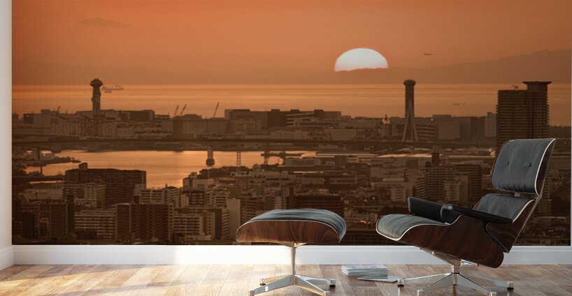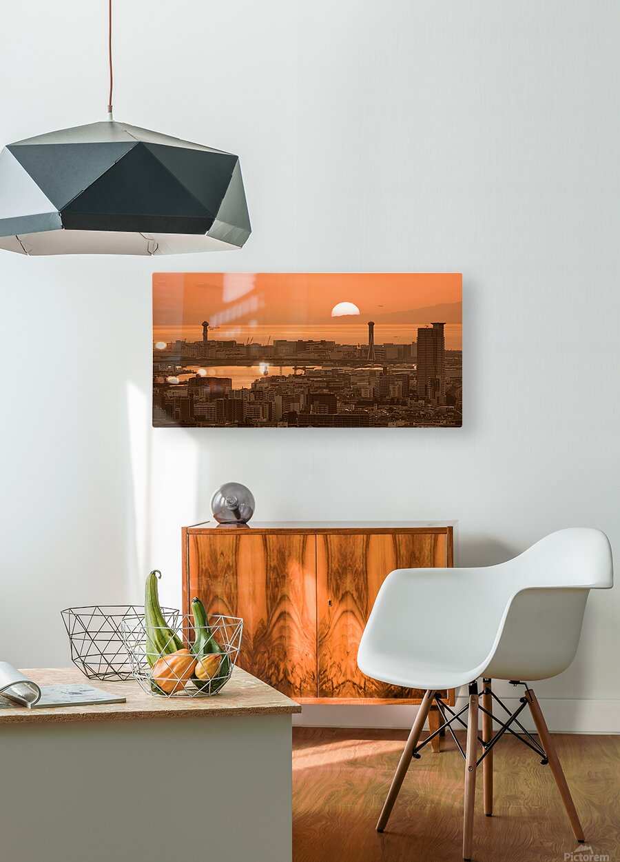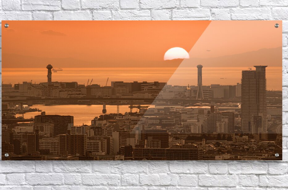 The sun sits low over Osaka Bay casting a deep orange glow across the water and the dense spread of the city below. Bridges towers and tightly packed buildings stretch toward the horizon their silhouettes layered against the fading light as the day draws to a close. Osaka Bay forms a key part of the city’s waterfront connecting industrial areas transport links and residential districts across one of Japan’s busiest urban regions. Its broad open aspect offers rare space within the city where the skyline can be seen in full against the changing sky. A perfect photograph for those drawn to cityscapes warm evening light and the scale of urban Japan. This image is available as wall art and across a wide range of formats to suit your space or style.