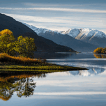 Golden autumn trees glow in the crisp Highland light as their reflections ripple gently across the still surface of Loch Leven. A lone canoeist drifts...[+]